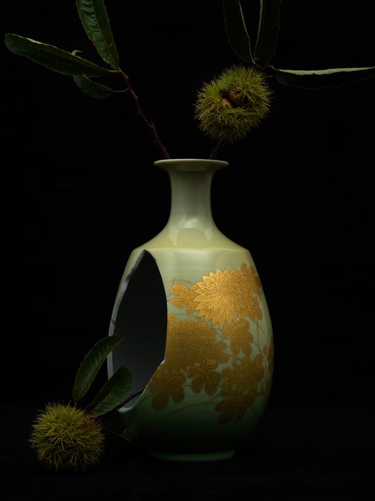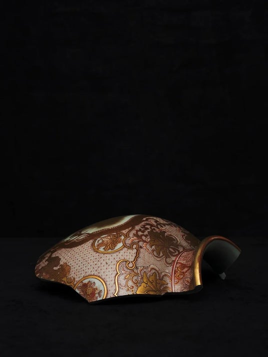 110年以上の歴史を誇る石川県小松市の九谷焼窯元〈錦山窯〉。伝統技法を守りながらも革新的な表現を追求し、人間国宝・吉田美統をはじめとする名工たちが繊細で華麗な作品を生み出してきましたが、能登半島地震により、貴重な作品が割れ、欠けるという甚大な被害を受けました。