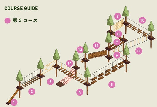 アスレチック基本コース:第1コース、第2コースのエレメントを何度でも利用できるコースプラン (所要時間 約120分)