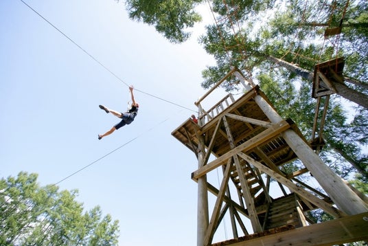 ハーネスを装着し、地上7~8mの高さに設置された様々なエレメントのコースを進むアクティビティです。仲間と助け合ったり、 タイムを計って競争したりしながら、ゴールを目指します。
