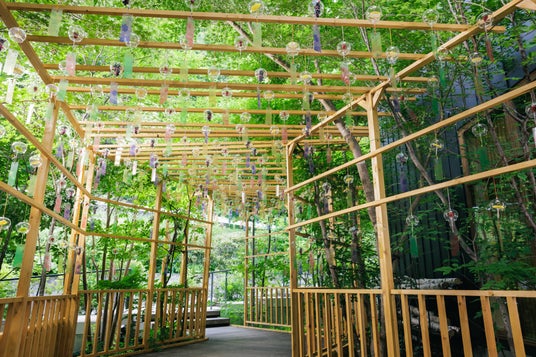 パブリックスペース「TAMARIBA」の中庭には、フルーツをあしらった風鈴のフォトスポットが設置されます。夏の風物詩である風鈴にフルーツを取り入れたBEBならではのデザインで、中庭のやぐらに並べられた風鈴が、透明感のある音色とカラフルな彩りで涼しさを演出します。