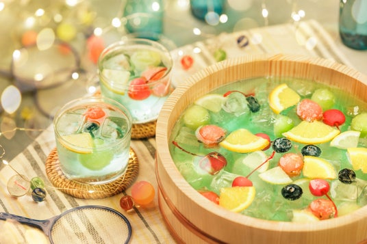 スーパーボールすくいをアレンジした「フルーツボールすくいサワー」では、大小カラフルなスーパーボールに見立てて、スイカ、メロン、ブルーベリーなどを浮かべました。フルーツがたっぷり詰まったサワーを囲みながら、狙いを定めたフルーツボールをポイですくい、みんなとシェアして楽しめます!