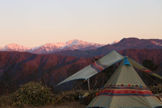 - キャンプサイト|20組限定のゆったりとした空間。陣馬形山の絶景を最大限楽しめる。