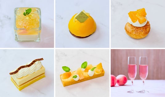 暑い夏にぴったりの涼やかなスイーツ、「能登ミルクのパンナコッタと白桃のジュレ」や、真夏の太陽をイメージしたドーム型の「マンゴーココ」、サクッと軽いタルト生地にカスタードクリームを絞り白桃をトッピングした「白桃タルト」など全7品のスイーツ。また、桃をベースにした爽やかなノンアルコールカクテル「ベリーニ」がドリンクメニューに仲間入り。軽やかな炭酸感と滑らかな口当たりの桃の味わいを同時にお楽しみください。