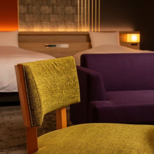 客室のご紹介「武家屋敷」をコンセプトに、安らぎを感じられる和を取り入れたシンプルモダンなデザイン。加賀友禅に用いられる加賀五彩の華やかさをプラスしました。伝統的な色彩が奥ゆかしく、ゆったりとしたお時間をお過ごしいただけます。 70平米のラグジュアリースイートや、トリプル仕様にも変化し3名様でのご宿泊が可能なツインプラスのお部屋が家族旅行や女子旅に人気。