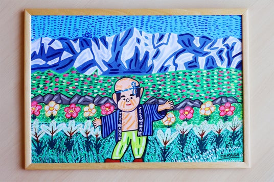期間中、アクリル画4点をささら屋立山本店に展示いたします。独創的で鮮やかな色彩感覚と楽しいストーリーで、見る人を笑顔にするような作品を手がけるアーティストです。(作品の販売はございません)