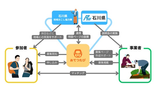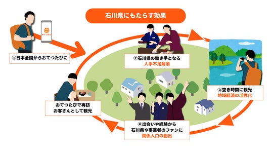株式会社おてつたび(本社:東京都渋谷区、代表取締役CEO:永岡里菜、以下「おてつたび」)は、石川県内における「お手伝い」を通じた関係人口(※)の創出・拡大に向けて、県との連携を開始しました。