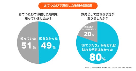 また、参加者の80%が「おてつたびがなければ訪れる予定はなかった地域」に滞在し、そのうち49%は「滞在地域についてそれまで知らなかった」と回答しました。