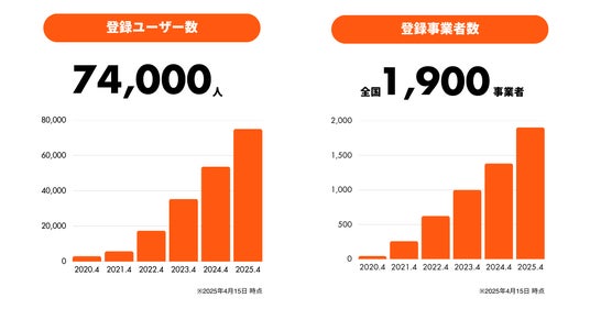 2019年1月にサービスを開始し、2025年4月時点で登録者ユーザー数は70,000人を突破しました。参加者の約半数はZ世代ですが、近年ではセカンドキャリアを見据えたシニア層からの需要も増加しています。受け入れ先は全国1,900箇所以上、業種はホテル・旅館などの宿泊業や一次産業が中心ですが、ゲストハウス、キャンプ場、酒造会社、水産物の加工業、飲食店など、さまざまな分野での受け入れが広がっています。