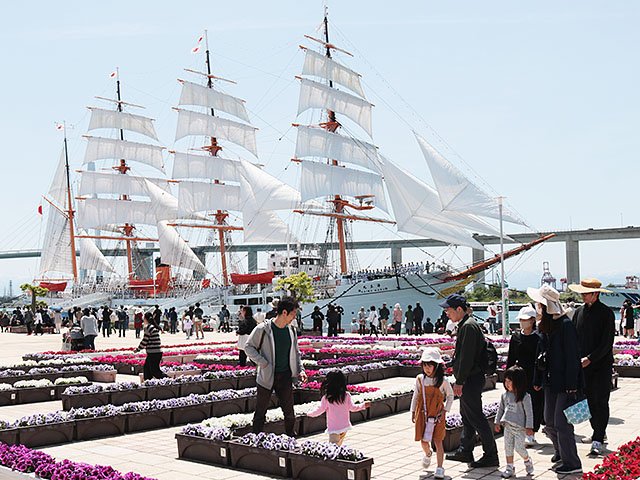 イベントに合わせ、帆船海王丸の展帆(てんぱん)が行われた。ボランティアや船員らが協力して帆を広げると、観衆から拍手が起こった。