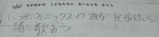 能登の小中学校/高校を訪問しながら(宝立小学校・穴水小学校・松波小学校・輪島合同6校・門前中学校・輪島高校・七尾高校)子どもたちから300以上の「復興への想い」をあずかり、合唱曲「フェニックス」を作曲させていただきました。