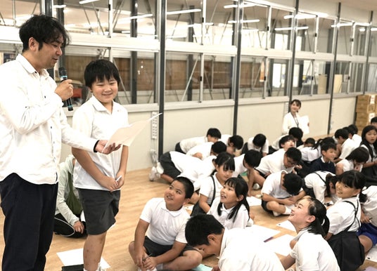 能登での「復興のメッセージ」を集めるプログラム。写真は珠洲市宝立小中学校にて