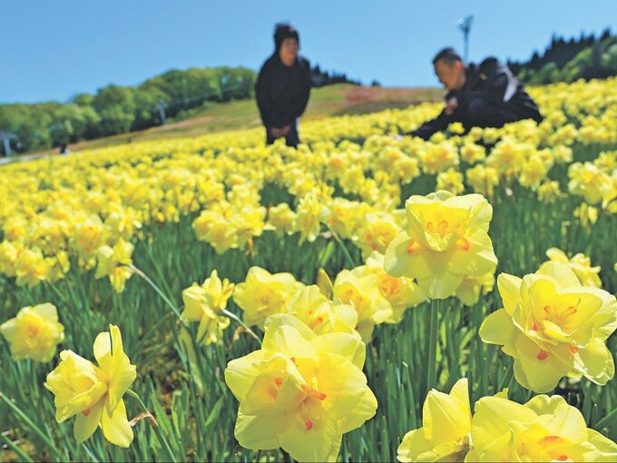 黄色のゲレンデ となみ夢の平、スイセン咲き誇る 2025年5月9日 05:00 社会・話題 ゲレンデを鮮やかに彩るスイセン=となみ夢の平スキー場 となみ夢の平スキー場(富山県砺波市五谷)のスイセンが咲き誇り、ゲレンデを鮮やかに彩っている。8日は地元住民らが黄色の花を眺めながら周囲を散策した。 スキー場を運営している同市五谷観光企業組合によると、ゲレンデには19品種約15万本が植えられている。遅咲きの品種が見頃で、12日ごろまで楽しめるという。 この機能は会員限定です。 お気に入りの記事を保存し、マイページで読むことができます。 ログイン 会員登録はこちら