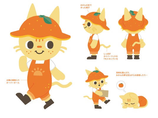デザインの説明:猫とみかんを組み合わせたポップなデザイン
