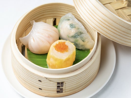 点心3種「海老の蒸し餃子・帆立焼売・豆苗と海老の蒸し餃子」