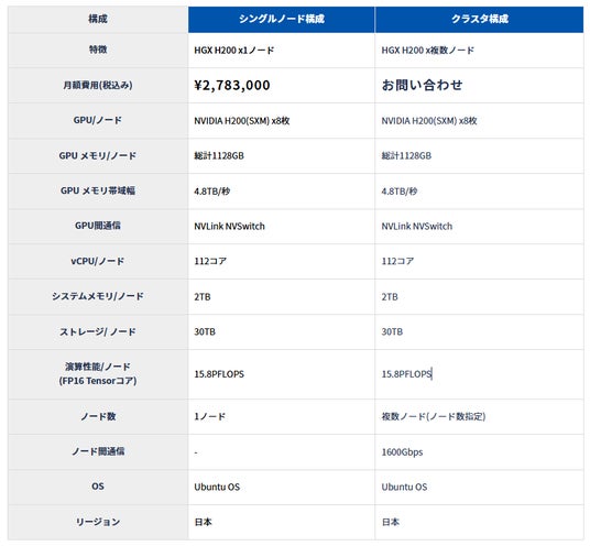 このたび、AIスパコンクラウド初となる、無料トライアルキャンペーンを開始しました。通常価格2,783,000円(月額)を、30日間無料でご提供いたします。LLM(大規模言語モデル)のトレーニングやマルチモーダルAIの開発はもちろんのこと、動作検証やGPU性能の事前テスト等にもご活用いただけます。