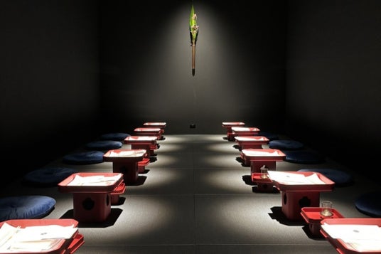 ■空間 「barrier=結界」をコンセプトに、賑わいのある金沢市街の中心にありながら、喧騒とは線をひき、界を結して、古えと現代、陰と陽の対比を感じていただく神聖な空間をつくる結界をイメージしました。 古民家を繊細にリノベーションした空間は、アートと料理が絶妙に結びつき、お客様が時間や空間を超えた旅に出るかのような体験を提供します。 真っ暗な中で、ピンスポットのみの空間は"陰と陽"、"昼と夜"、そして"古と新"の対比を通じて、barrier(結界)のコンセプトが表現されています。 瞑想や禅に近い非日常体験をお楽しみください。
