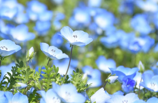 ネモフィラは北アメリカ原産で、ムラサキ科(旧ハゼリソウ科)ネモフィラ属の一年草。属名は「ネモス(小さな森)」と「フィレオ(愛する)」を合わせた言葉で森林周辺に自生することに由来。澄んだ青い小さな花は、赤ちゃんのような可愛らしい花姿から「Baby blue eyes」と呼ばれています。花言葉は、その見た目から「可憐」、ヨーロッパに渡って良く育ったことから「どこでも成功」などが知られています。