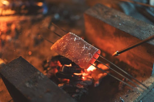 熾火で焼く信州サーモン