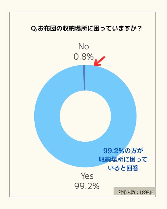 (約99.2%)の方が「布団の収納場所に困っている」と回答。