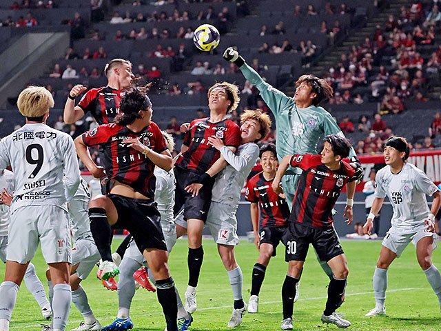 序盤は立て続けにシュートを許したが、4-4-2の陣形からのハイプレスや球際の強さでペースを握り、攻勢を強めた。44分、相手の連係ミスからボールを奪ったMF伊藤が中央を突破。ゴール前へ出した横パスをFW碓井(上市町出身)が落ち着いて流し込み、1-0で折り返した。