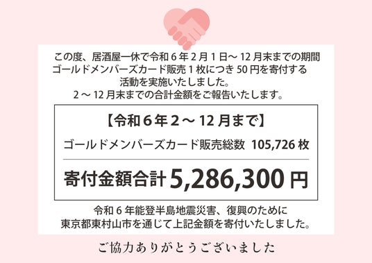※一休ファンクラブカード入会金(1枚1年間330円~)のうち本年は30円分を能登半島地震の義援金として寄付しております。
