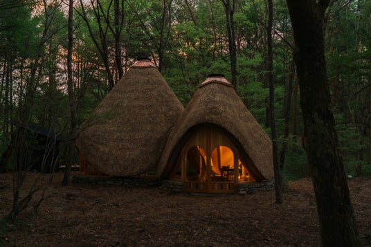 夕暮れの森の中にたたずむ「森と、ピアノと、 」の空間。日々の喧騒を忘れ、ゆるやかな時間の流れに身を任せることができます。