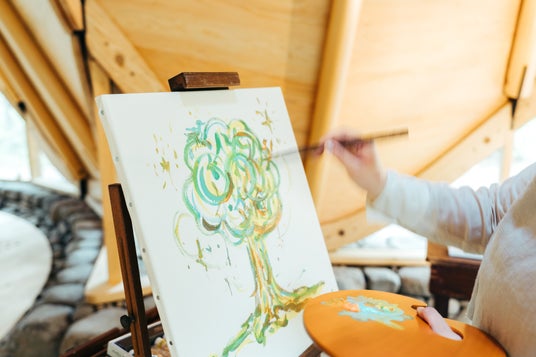 色の間にはキャンバスがあり、イーゼルを森に持ち出して自然の中で描くこともできます。