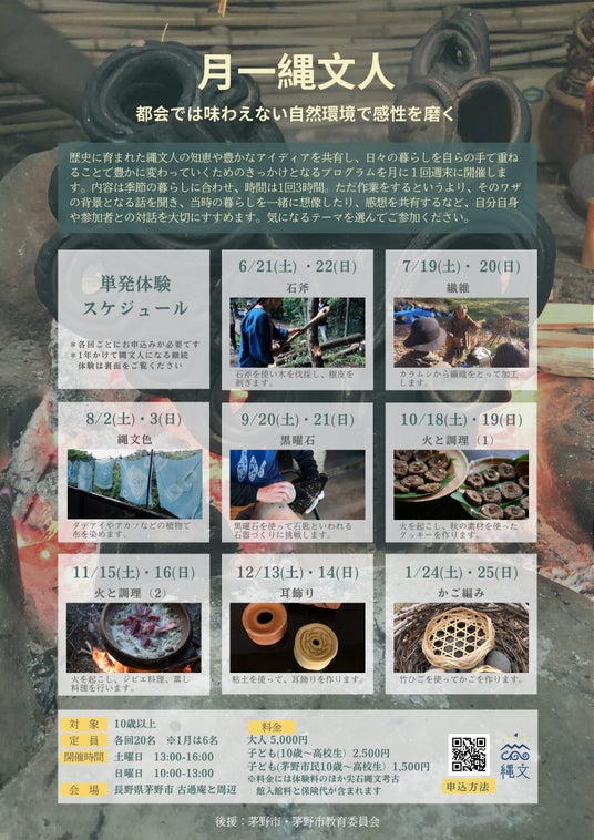 月一縄文人(6月開始):月1回の季節に応じた体験型ワークショップ