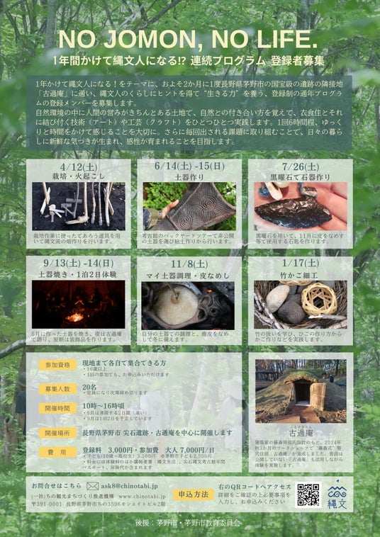 今回の展示は、単なる記録ではなく、“これから”の物語の始まりで「古過庵」は、作って終わりではありません。ここからが、新しい縄文体験のはじまりです。現在は以下のプログラムを開催中です。NO JOMON, NO LIFE.(4月開始):1年間通じて縄文を探究する登録制プログラム