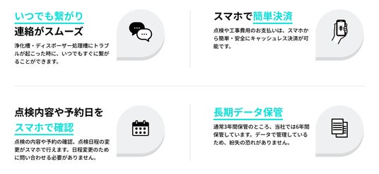下水道利用者は特別な管理が不要であるのに対し、浄化槽ユーザーは定期的な点検や清掃の手続きが必要でした。しかし新サービス「みんなの浄化槽保守点検」により、ユーザーはスマートフォンから簡単に保守点検の申し込みや予約確認ができ手間を大幅に軽減できます。また、点検後の浄化槽の放流水の状態を視覚的に表示し、直感的にその状態を把握できるようにしています。