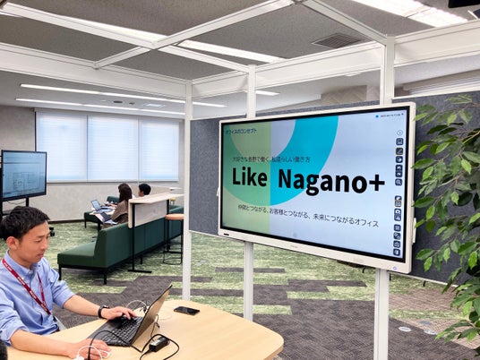 ViCreA 長野は、「Like NAGANO + ~仲間とつながる・お客様とつながる・未来につながる~」をコンセプトに設定し、築30年ほどが経過したオフィスを現在の働き方に合わせてリニューアルしたものです。