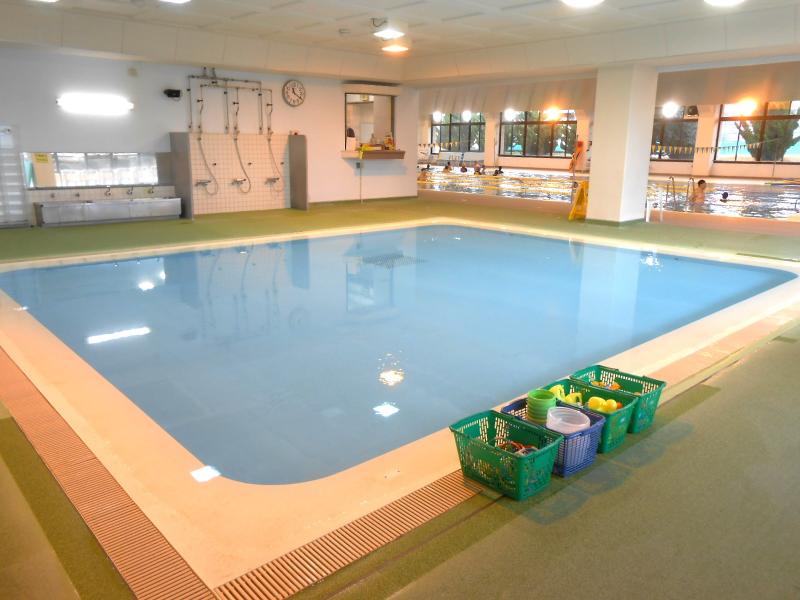 年中利用できる温水プールは、25㍍プールと子ども用プールの2種類があり、ジュニア~シニアの水泳教室が多数プログラムされている。教室が入っていない時間帯は一般利用もでき、じょうろやボールなど子どもたちが楽しめるおもちゃも充実。プール利用後に大浴場で体を温めることもできる。