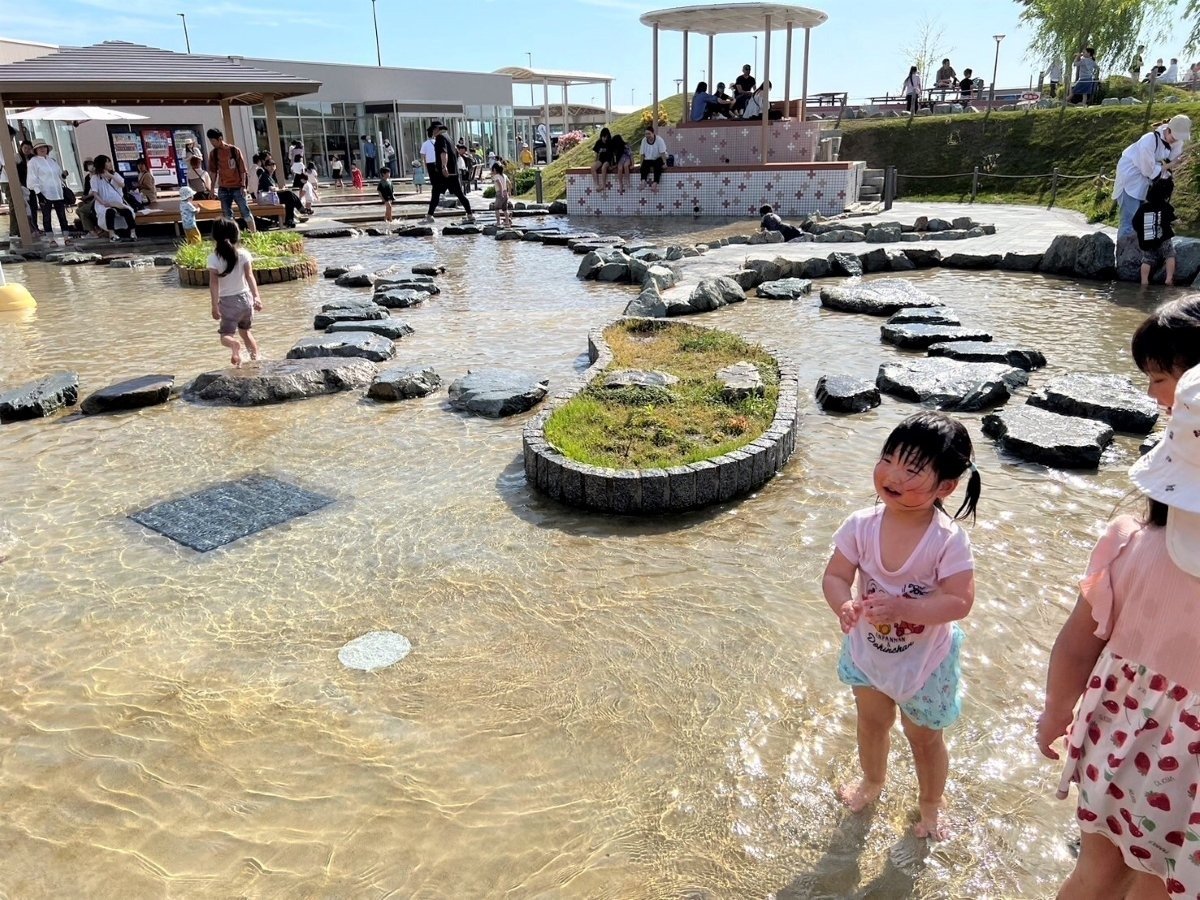 透き通ったきれいな水で水深も浅く、小さい子でも安心して遊ばせることができます。施設内には芝生広場や大型遊具を備えた公園があり、ピクニックや公園遊びとセットで訪れ、足をパシャパシャするだけでも子どもは喜ぶと思います♪