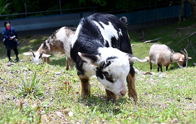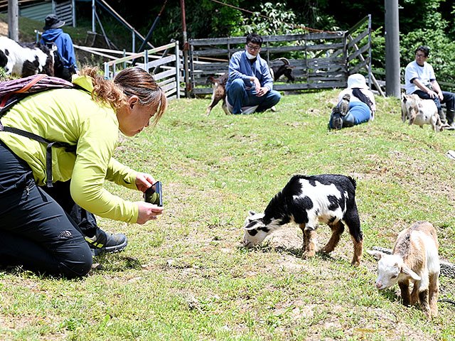 県内をはじめ東京、大阪、愛知、大分など各地から参加者が集まった。大分市の会社員、竹内みゆきさん(52)は、動画で子ヤギのかわいさに魅了され、初めて訪れたという。「感動で胸がいっぱい」と笑みを見せ、写真を撮ったり、ヤギと戯れたりしていた。