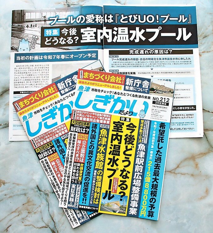 富山県の魚津市議会は「議会だより」を6月1日発行号からリニューアルする。週刊誌の中づり広告のような表紙を採用するなどデザインとレイアウトを刷新。特集ページも新たに設け、市の課題を分かりやすく伝える。5月末から各戸に届ける。