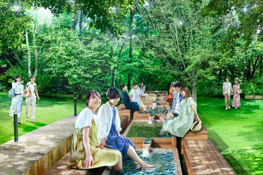 ~全長約6メートルの足水桶がトンボの湯の横に新登場、森林ソーダで心身ともに涼を感じる~