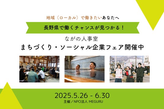 このたび「ながの人事室」では、2025年5月26日~6月30日の期間中、地域課題の解決やまちづくりに取り組む長野県内の企業を紹介する特集企画「まちづくり/ソーシャル企業フェア」を開催します。
