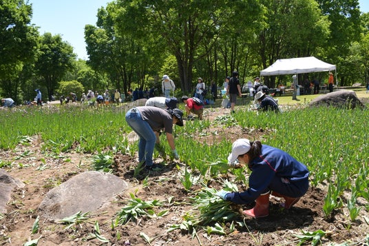 国営アルプスあづみの公園【大町・松川地区】では、6月1日(日)に 「チューリップ球根掘り取り体験」を開催します。園内の花畑で鮮やかなお花を咲かせたチューリップの球根を掘り取り、お持ち帰りいただけます。球根をご自宅に植えていただくことで、公園から広がる花緑いっぱいの町づくりに役立てることを目的とします。