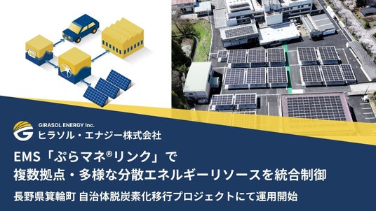 百年続く太陽光発電の実現を目指す、ヒラソル・エナジー株式会社(東京都文京区、代表取締役:李 旻、以下「当社」)は、長野県箕輪町が推進した複数拠点にまたがる分散型エネルギーリソース(DER)による自治体脱炭素化移行プロジェクト(以下「本プロジェクト」※1)に参画し、箕輪町内の複数の公共施設に、エネルギーマネジメントシステム(EMS)「ぷらマネ(R)︎リンク」の導入と、オンサイトPPA型太陽光発電所の導入支援を提供しました。