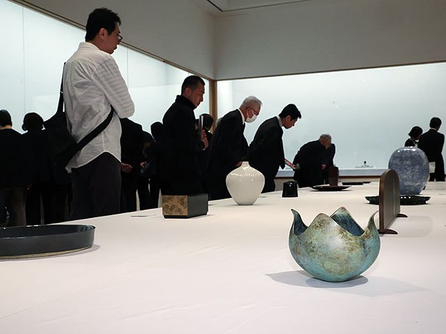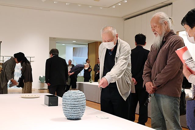 会場には多くの愛好者らが訪れた。高岡市二上の僧侶、田中良憲さん(77)は「人間国宝の作品が見られるから毎年楽しみにしている」と話した。