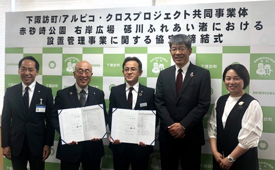 アルピコホールディングス株式会社(代表取締役社長:佐藤 裕一)の連結子会社である、アルピコリゾート&ライフ株式会社(代表取締役常務:鶴川 守)は、株式会社クロスプロジェクトグループ(本社:東京都千代田区)と構成する「アルピコ・クロスプロジェクト共同事業体」として、長野県下諏訪町と「赤砂崎公園 右岸広場 砥川ふれあい渚 における設置管理事業に関する協定書」を2025年5月29日(木)、下諏訪町役場にて締結いたしました。