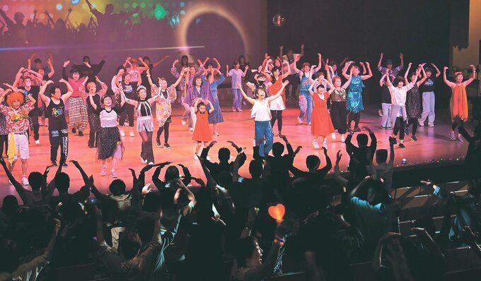 能登半島地震復興チャリティーイベント「ディスコワールドパーティー」が1日、富山県の氷見市芸術文化館で開かれた。児童から80代まで総勢60人が往年のディスコサウンドに合わせて、にぎやかなダンスステージを繰り広げ、訪れた大勢の市民に元気を届けた。
