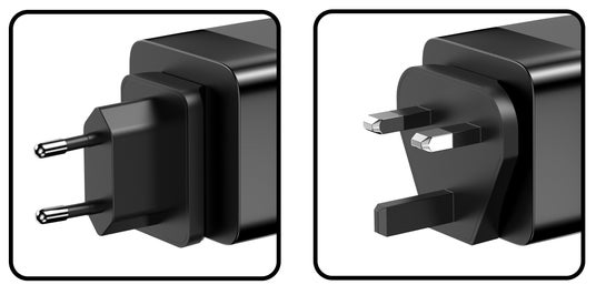 BF(英国)、C(欧州)の2つの変換プラグを付属。そのまま海外で使用可能。