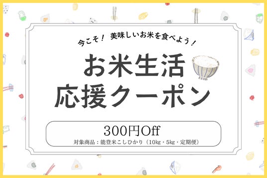 サービス開始を記念してあえのショップで使用できる『お米生活応援クーポン(300円オフ)』をプレゼントします。