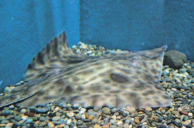 魚津水族館(魚津市三ケ)は、富山湾で珍しいエイの仲間、メガネカスベの展示を始めた。同館での展示は初めて。15日まで観賞できる。