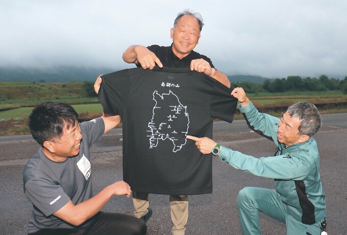南砺市山岳協会は、市誕生20周年記念として南砺の山に登る「チャレンジ20!!」を実施し、それに合わせて地図を作った。国土地理院の「地理院地図」に載っている山の位置を分かりやすく示していることから、Tシャツにしてアピールすることにした。