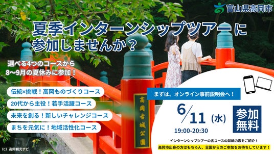 高岡市短期型夏季インターンシップツアーは6月7日 (土)より申込受付開始!