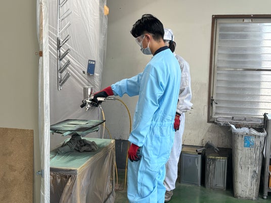 塗装体験を通して社員さんとのコミュニケーションが生まれた場面