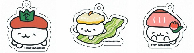 県ブース来場時に投稿内容を確認し、各日先着50人にキーホルダー3種セットをプレゼントする。SNS上で投稿されている漫画「おしゅしだよ」とコラボしたシロエビやブリのキャラクターがデザインされている。