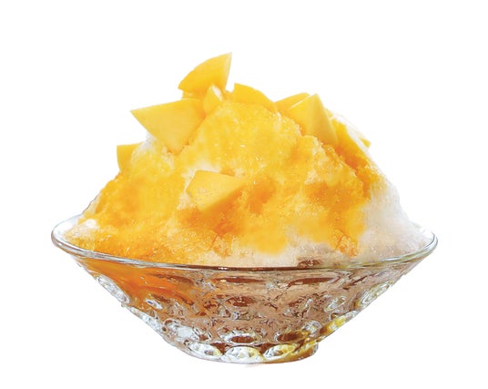 口どけなめらかなきめ細かい氷にあわせるのは、味わいや食感、香りを追求したパティシエ特製のソース。今年は「マンゴーミルク」と「抹茶と能登大納言」の2種類をご用意いたしました。